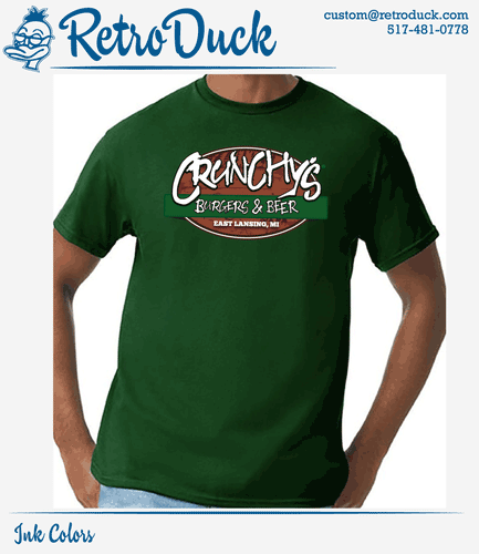 Unisex and men's t-shirts, hoodies, hats and glassware for Crunchy's, a legendary hangout in downtown East Lansing.